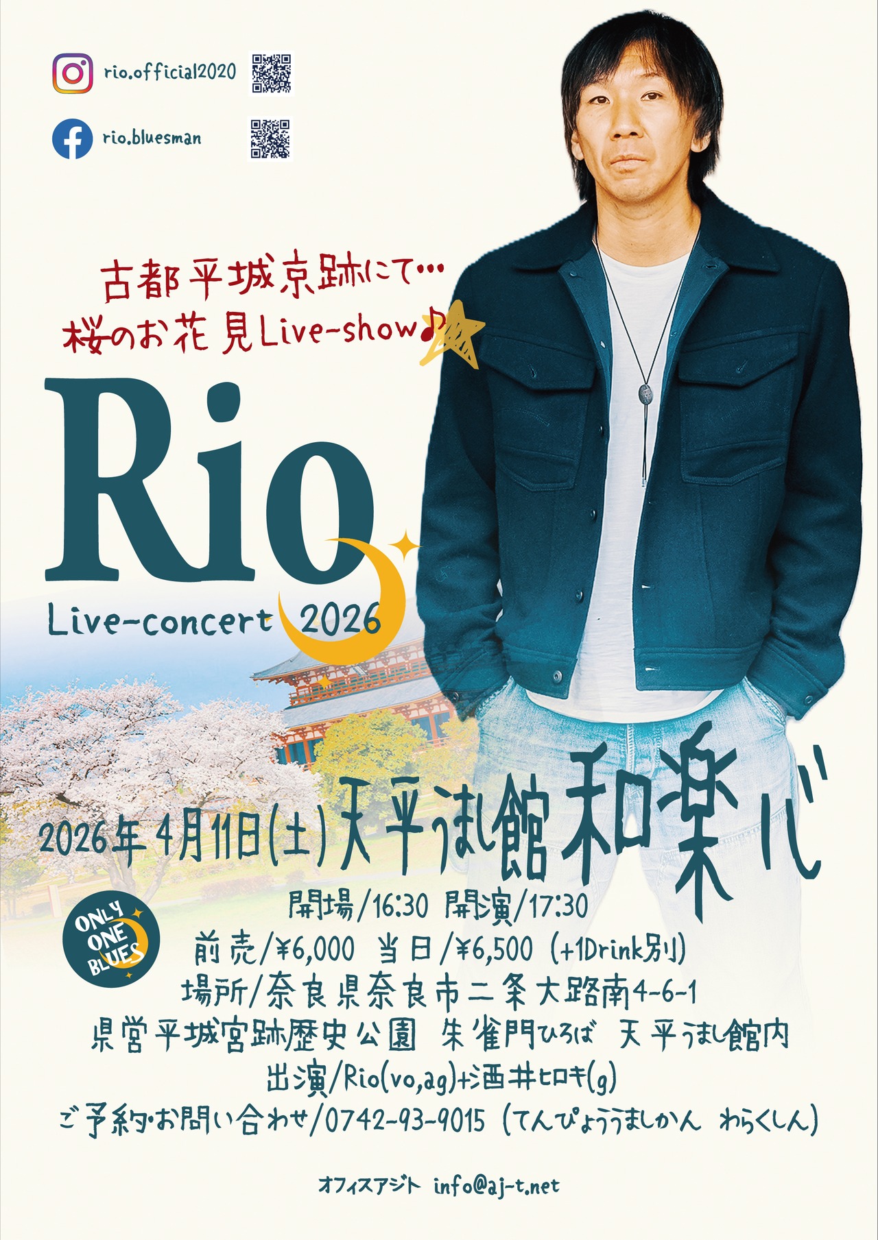 2026年4月11日『奈良 天平うまし館 和楽心』のライヴチケットです。ライヴ当日は受付にてお名前をお伝えのうえ、【購入完了メール】をご提示ください。会場スタッフがお席まで案内いたします。